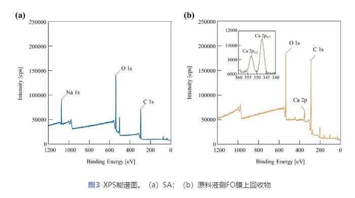 • 与SA相比,浓缩物中COO-的反对称vas和对称vs伸缩振动峰向右移动,表明原料液侧的SA桥接了反向渗透的Ca2+