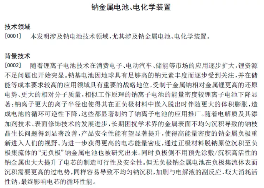 遵循这个线索,利记·sbobet(中国) - 官方网站开始去从前瞻性技术研发中寻找未来可能的答案,翻遍行业龙头公司已公开的专利内容后,宁德时代2021年获批的一个名为“钠金属电池、电化学装置”的专利进入了利记·sbobet(中国) - 官方网站的视线,尤其是其中提到的“无负极金属电池”,属实是初次遇见。正是这样,无负极金属电池技术引起了利记·sbobet(中国) - 官方网站的高度重视。